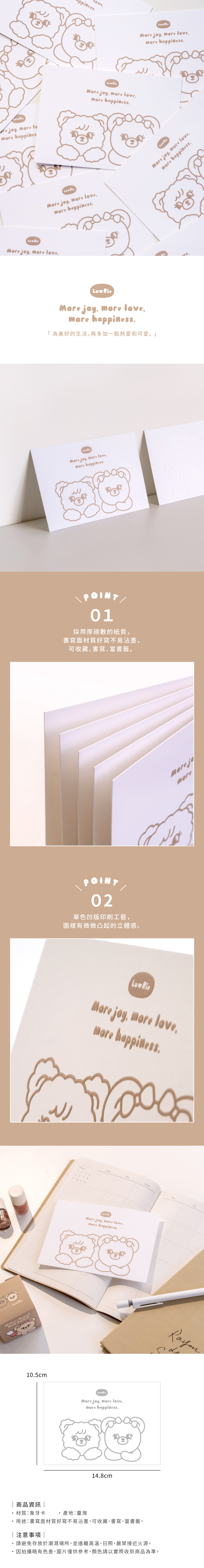 無塗佈紙張手感自然純樸,帶有紙張原始觸感。書寫面材質好寫不易沾墨,可收藏、書寫、當書籤。