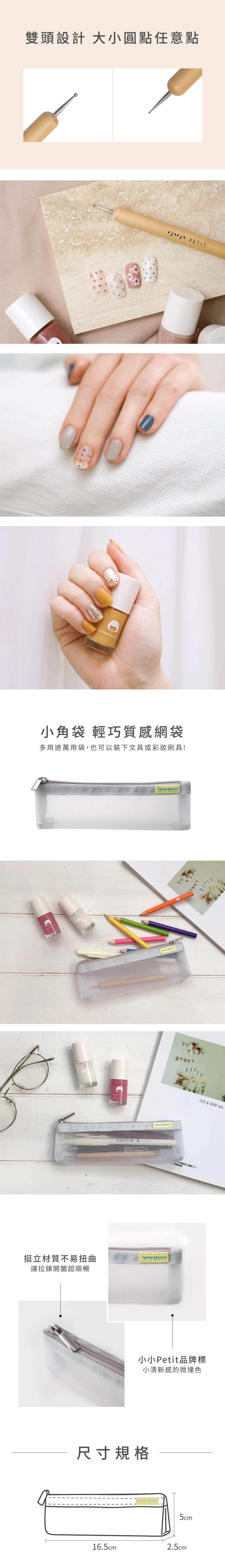 ●雙頭大小圓珠設計,讓指甲彩繪更細緻,創意變化無限。